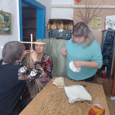 Специалист культуры и участники участники клуба «Диалог» дружно, своими руками, вложив частичку души и проявив фантазию сделали красавицу куклу Масленицу.