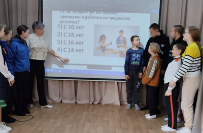 Викторина началась с разминки, в ходе которой ребята ответили на правовые вопросы. В конкурсе «Заморочки из бочки», участники назвали противоправный поступок, изображённый на экране и, в ходе обсуждения, определили, какая ответственность может наступить за данное деяние.