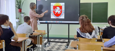 Участники беседы вспомнили, какие народы населяют полуостров. Также школьники посмотрели видеоролик «Крым – жемчужина России», в котором отображены главные достопримечательности республики.