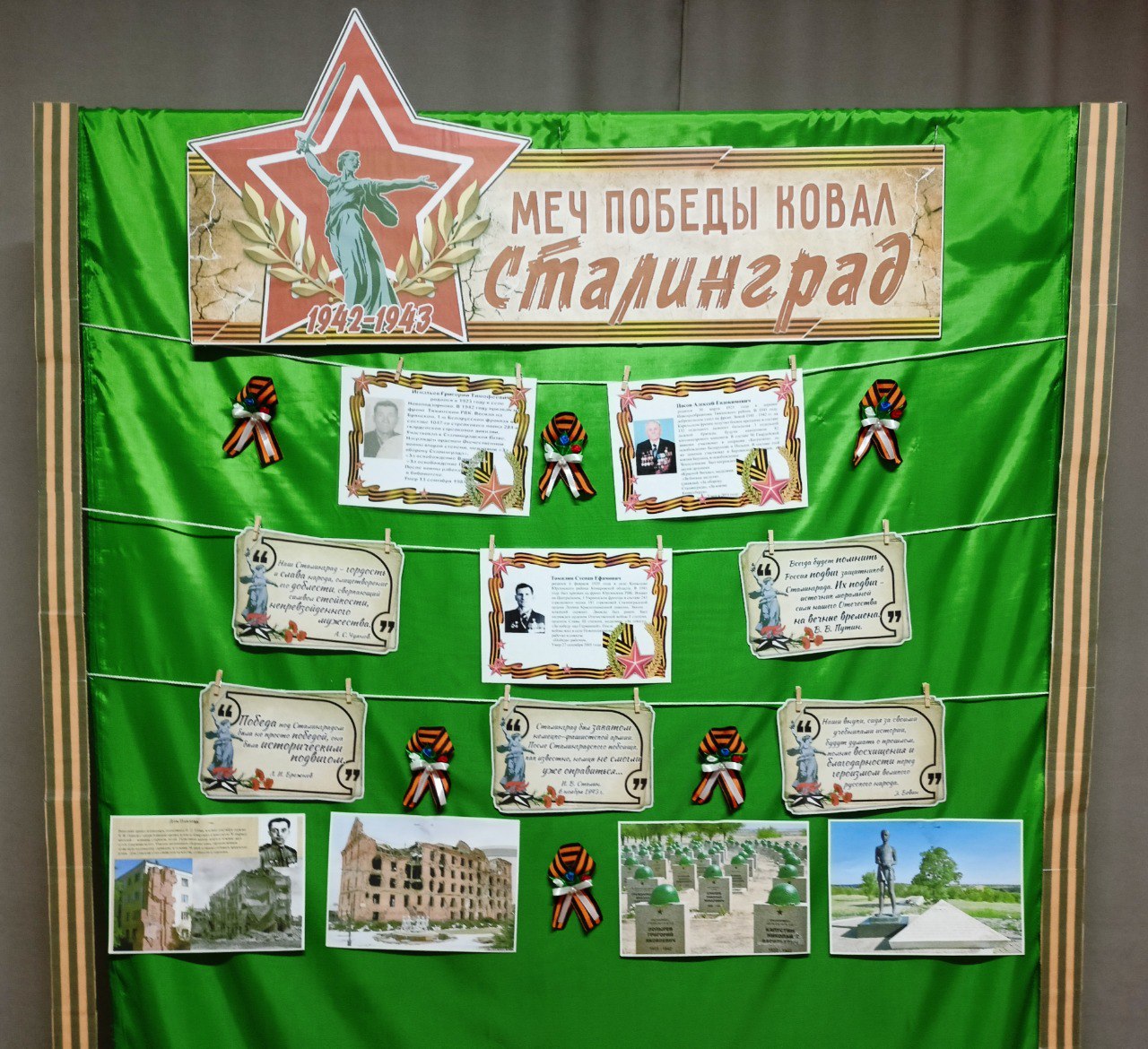 Посетители выставки могут познакомиться с информацией о жителях села Новоподзорново, которые были непосредственными участниками Сталинградской битвы.