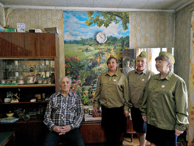 С пожеланием крепкого здоровья, долгих лет жизни, мирного неба над головой, подарили Григорию Ивановичу куклу-оберег Берегиню, сладости к чаю и исполнили песни военных лет.