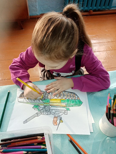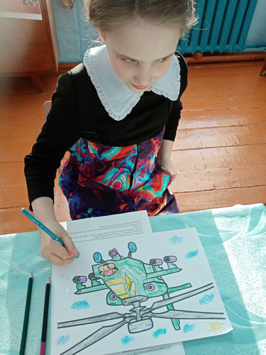 Ведущая рассказала ребятам о событиях, происходящих на Украине. Затем юные художники приступили к созданию творческих работ. При помощи карандашей и фломастеров ребята старались отобразить в своих рисунках защитников Родины, военную технику.