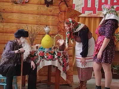 Участники художественной самодеятельности, радовали зрителей своими номерами, а инсценировка сказки «Курочка Ряба» вызвала много позитивных, неповторимых эмоций у зрителей. Также была оформлена выставка работ ДПИ «Рук прекрасное творение», выполненных участниками клубного формирования. Все работы были яркими, интересными и запоминающимися. Для присутствующих была оформлена фотозона «Русская изба», где все желающие могли сделать фото на память.