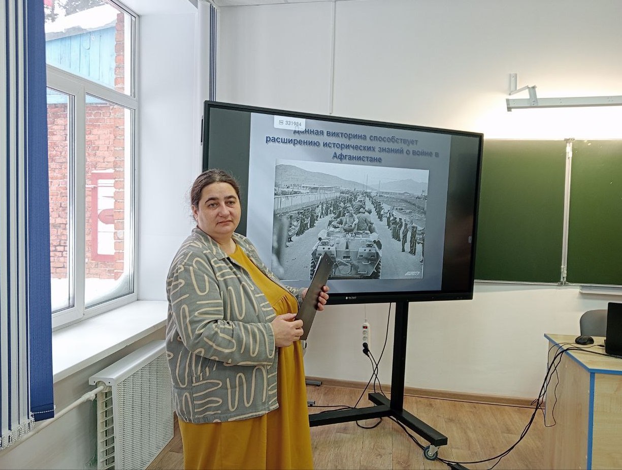 В ходе беседы учащиеся 9-11-х классов Ступишинской средней общеобразовательной школы узнали подробности о локальных войнах, послушали песни, посмотрели кадры кинохроники. Неподдельный интерес у ребят вызвала информация о вооружении, экипировке, боевой подготовке российских войск, о тактике ведения боевых действий в горной местности.